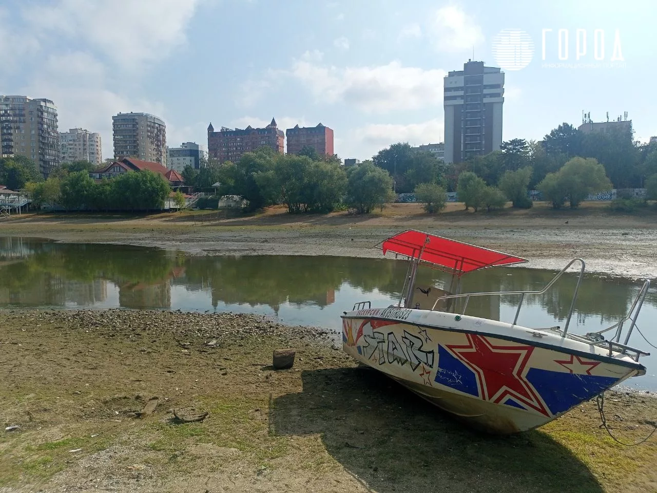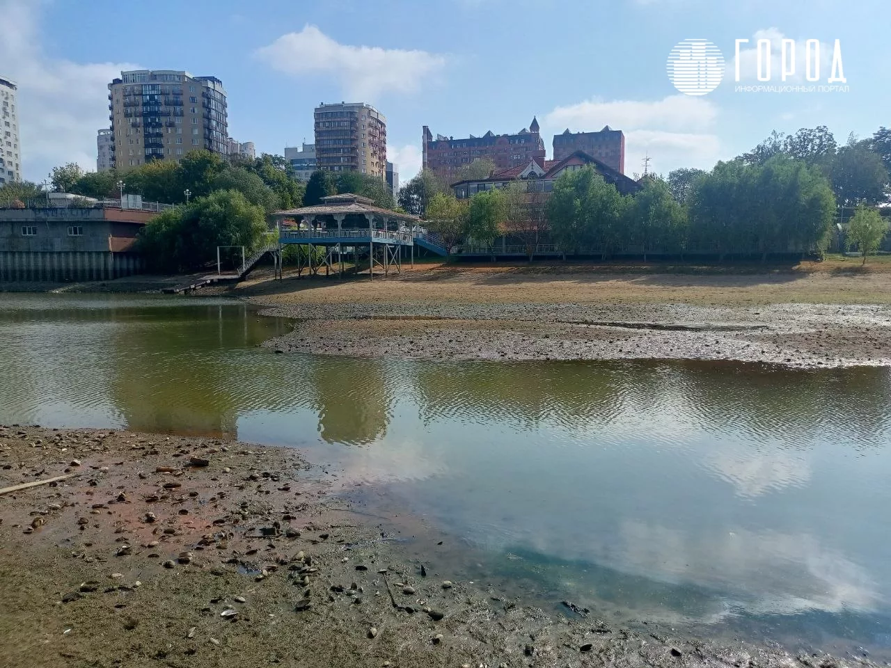 Практически каждый год высыхает почти полностью и Затон на Кубанской набережной. Местами два берега разделяет небольшой пролив, а само русло обнажилось.
